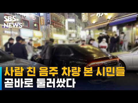 서울 송파구에서 행인을 친 음주운전자가 경찰에 붙잡혔습니다. 사건 직후 운전자가 차를 움직이는 듯하자 시민들이 막아섰습니다.